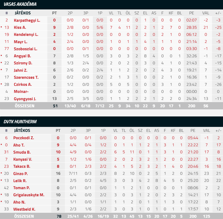 Vasas Akadémia – DVTK Huntherm 51-78 (16-22, 14-19, 12-20, 9-17)