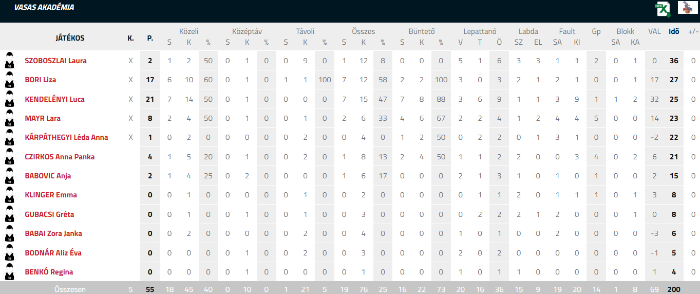 Vasas Akadémia – Darazsak Sportakadémia 55-72 (13-15, 17-12, 14-23, 11-22)