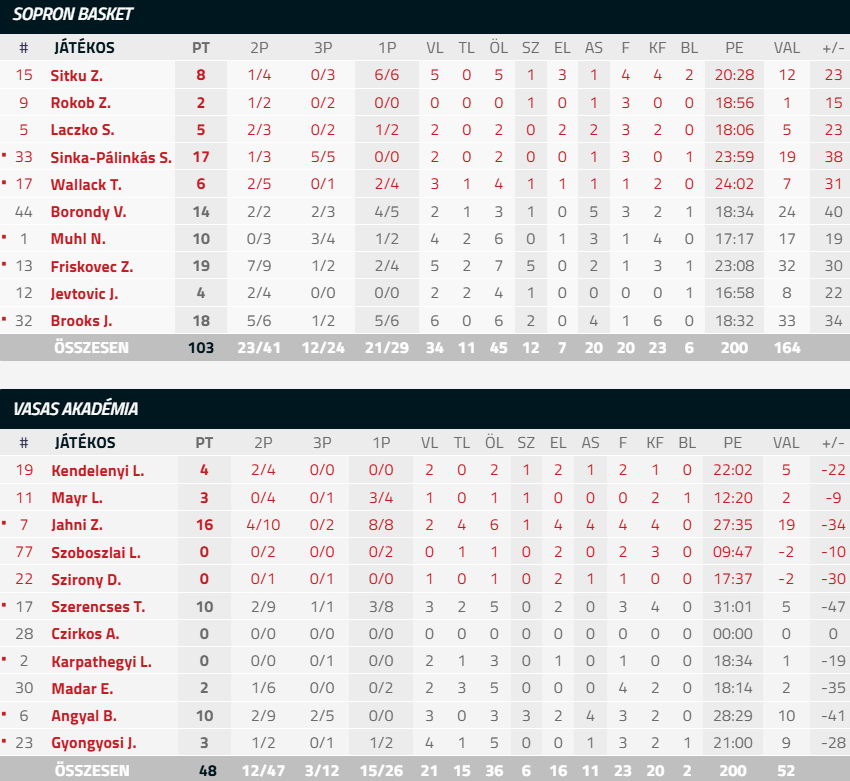 Sopron Basket – Vasas Akadémia 103-48 (28-11,32-7,28-15,15-15)