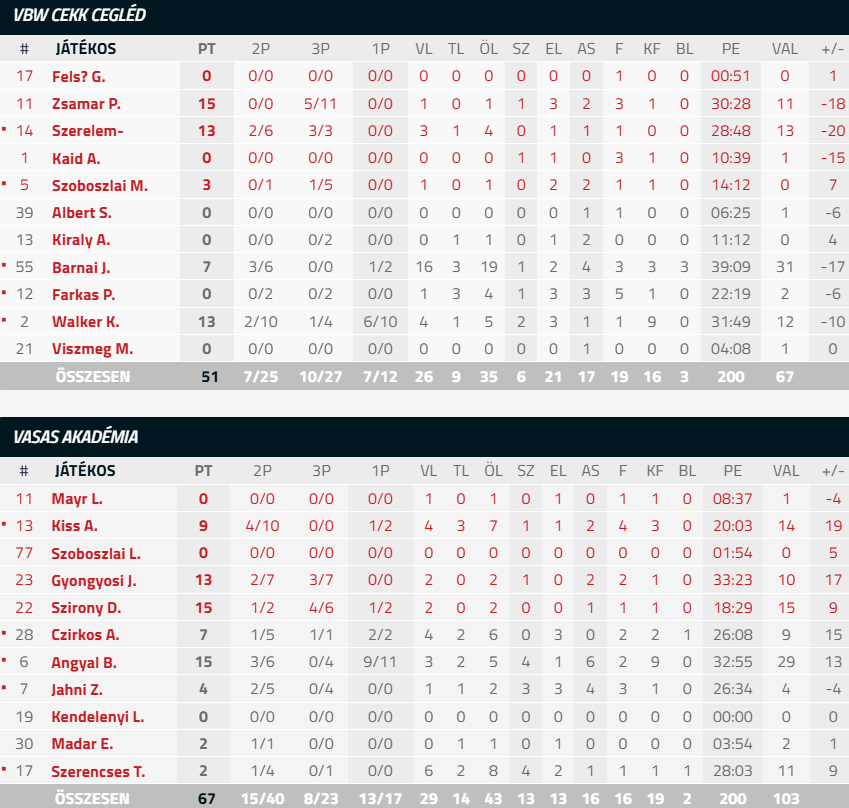 VBW CEKK Cegléd – Vasas Akadémia 51-67 (23-18,10-15,9-13,9-21)