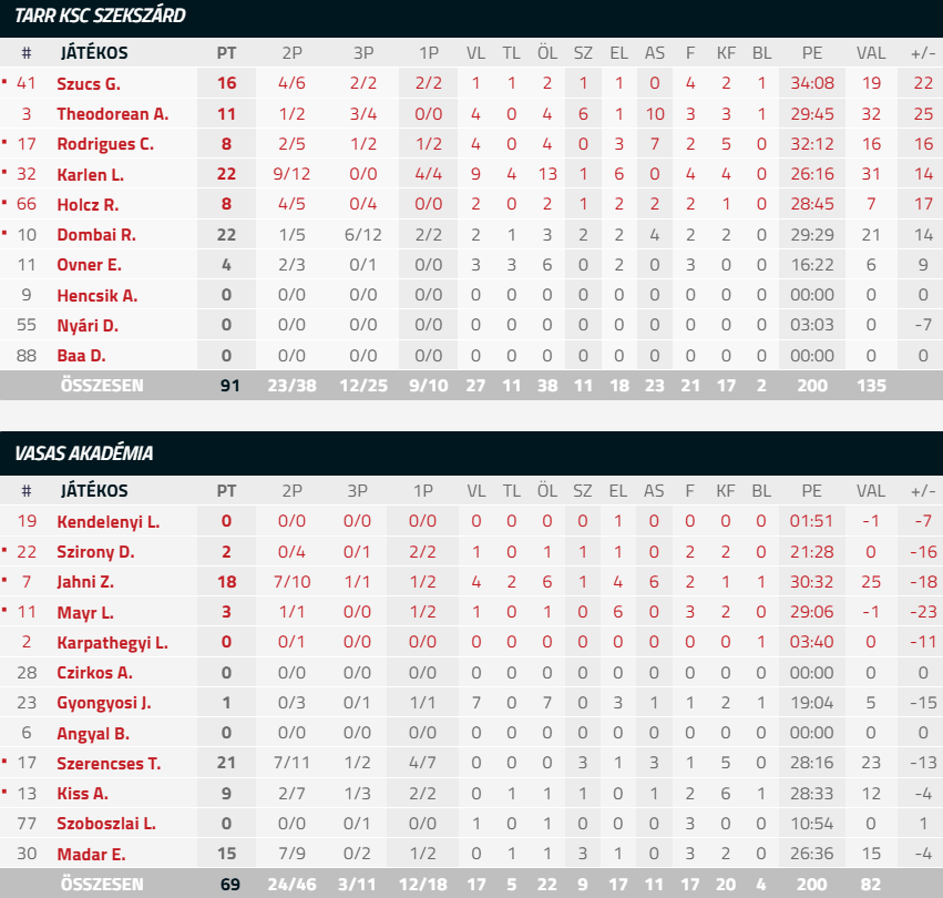 TARR KSC Szekszárd – Vasas Akadémia 91-69 (22-21, 16-16, 29-23, 24-9)