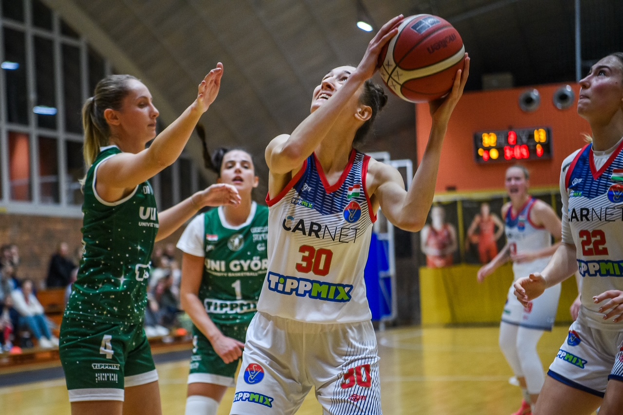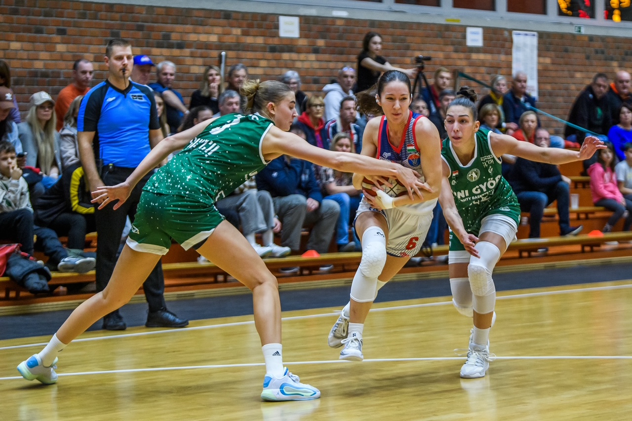 Baffy nyitotta a hajrát egy duplával, amire Kendelényi Lulu válaszolt egy ziccerrel. Nagy kedvvel játszott fiatal centerünk, akit a szurkolók is hangosan biztattak. Jáhni Zsófi rutinos palánk alatti játékát nem tudta lekövetni ellenfelünk, és mivel három perc alatt nem tudtak zárkózni a vendégek, időkérés szakította meg a meccset. Nem változott a játék képe, Jáhni Zsófi elől és hátul is remekelt, Baffy hárompontosa pedig csak kozmetikázott az eredményen. Hazai összjátékból Czirkos Panka tudott eredményes lenni, Jáhni Zsófi ezúttal triplával jelentkezett, Madár Eszti pedig a szokásos lesipuskás akcióval folytatta a pontgyártást. Két perccel a vége előtt átvették az irányítást a fiatalok, előbb Kiss Angi és Angyal Barbi támogatásával, majd lassan ők is kioldozhatták a cipőfűzőt, hiszen a Czirkos Panka, Kárpáthegyi Léda, Kendelényi Luca, Mayr Lara, Szoboszlai Laura ötös fejezte be a mérkőzést. 41 ponton tudtuk tartani a Győrt, ami a védekezésünket dicséri, ezzel pedig lányaink zsinórban harmadik győzelmüket is bezsebelték.