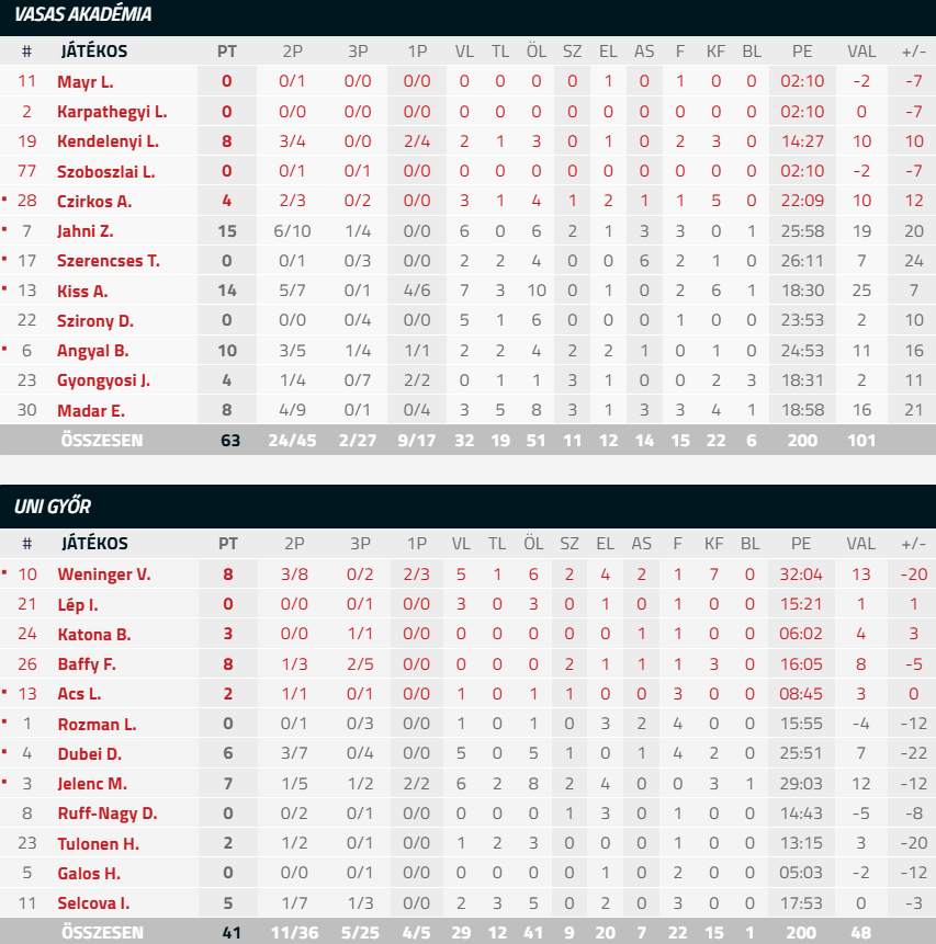 Vasas Akadémia – UNI Győr 63-41 (24-9, 14-10, 9-7, 16-15)