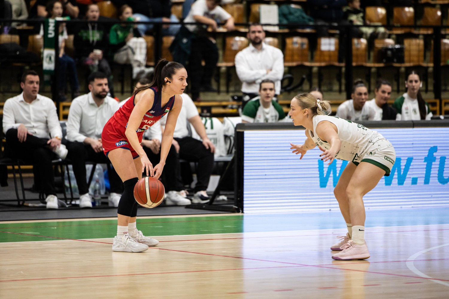 A bemelegítés során Kiss Angi nélkül készült csapatunk a feldobásra, centerünk kisebb sérülés miatt az oldalvonalról támogatta társait. A győriek az első másodpercektől fogva a nehéztüzérségben bíztak, Dubei hárompontosa még nem esett be a gyűrűbe, Gálos triplája azonban megnyitotta a találkozót. Angyal Barbitól jött a válasz vendég oldalon, irányítónk nem kapott túl szoros védekezést az első percekben, ami határozottan a javunkat szolgálta. Három percen belül hét Angyal pontot is jegyezhettünk, két dupla és egy tripla volt vezérünk mérlege, amivel a vezetést is átvettük. Dubei és Zsebe-Weninger révén egyenlített, majd utóbbi büntetőivel az előny is visszakerült a hazai együtteshez. Nem tartott azonban sokáig a győri öröm, Angyal Barbi újabb hárompontosát követően ugyanis a társak is beszálltak a pontgyártásba. Szerencsés Tami és Jáhni Zsófi is ziccert értékesített, Gyöngyösi Janka triplájával pedig kilenc pontos előnnyel zárhattuk az első negyedet. Mindkét oldalon voltak hibák, kihagyott helyzetek, de Nenad Markovic tanítványai voltak azok, akik gyorsabban tudták rendezni soraikat. Agresszív, már-már verekedős mérkőzést láthattunk magas faulthatárral, ami sokszor frusztrációhoz vezetett a pályán. Jelenc és Baffy pontjaival zárkózott a Győr a második játékrész elején, majd Angyal Barbi büntetőit követően Baffy egy hárompontost is elsüllyesztett. Zsebe-Weninger büntetőjével egy pontra zárkóztak a hazaiak, az irányítást azonban nem adtuk ki a kezünkből. Gyöngyösi Janka, majd Jáhni Zsófi dupláival újra kétlabdás előnyre tettünk szert, és bár Gálos egy újabb hárompontossal igyekezett borzolni a kedélyeket, Szerencsés Tami is betalált távolról, amivel sikerült megakadályoznunk a győri zárkózást. Hazai időkérés után tartani tudtuk előnyünket sőt, Madár Eszti dupláját követően kétszámjegyű különbséget mutatott az eredményjelző másfél perccel a második negyed vége előtt. Megérkezett a nehéztüzérség, csak nem hazai oldalon. Jáhni Zsófi, Szoboszlai Laura és Szirony Dorina is triplát értékesített, aminek köszönhetően megnyugtató előnnyel mehettünk pihenni a szünetre.