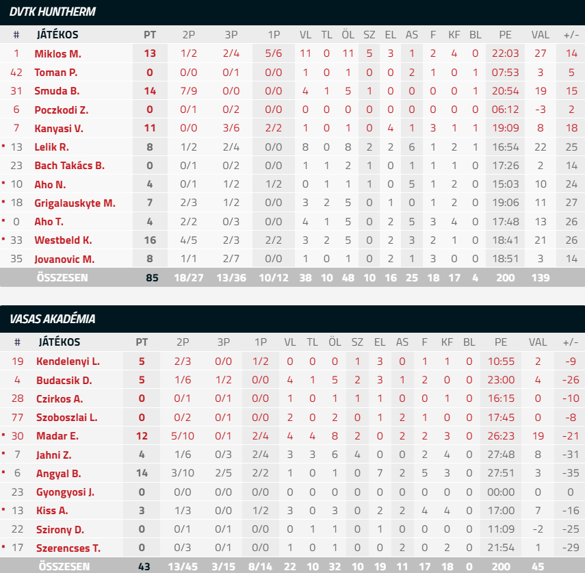 DVTK-Huntherm – Vasas Akadémia 85-43 (32-16,17-6,19-11,17-10)