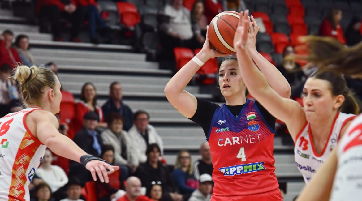Jáhni Zsófi büntetőjével és Molnár-Budácsik Dorka triplájával igyekeztünk zárkózni a folytatásban, Jovanovic azonban megálljt parancsolt, ő is hárompontossal jelentkezett. Sem izgalmat, sem túl sok látnivalót nem hozott a harmadik negyede eleje, ez pedig a hazaiaknak kedvezett leginkább, akik egy-egy jó akcióval növelni tudták előnyüket. 61-26-ra módosult az eredmény Westbeld újabb találatával, amikor vezetőedzőnk a kispadhoz szólította tanítványait. Czirkos Panka szerzett labdát, ám a gyorsindításból nem született kosár, kipördült a labda a gyűrűből. Következő támadásunk során Angyal Barbi használta jól a kapott blokkot, és értékesített egy üres középtávolit. Madár Eszti is gyűjtögette a pontokat, épp egy tőle megszokott támadólepattanó és vissza pöci akciót láthattunk tőle. A harmadik negyed végére némileg zárkózni tudtunk, mivel nem voltak eredményesek a hazai triplák, Angyal Barbi duplájával harminc pontra zárkóztunk, Miklós azonban ekkor megtörte a diósgyőri csendet távolról. Nem maradt megválaszolatlan kérdés a negyedik negyedre, ennek ellenére lányaink igyekeztek mindent kiadni magukból. Madár Eszti újabb találatát tapsolták meg a társak, majd Kendelényi Lulu is kapott egy kis dicséretet, amiért nem adott könnyű ziccert Miklósnak a gyorsindításból. Westbeld már könnyeben hámozta át magát fiatal centerünkön, a válaszul a túloldalon, egy középtávolival jelentkezett. Grigalauskyte jóvoltából negyven pontra nőtt a különbség a két csapat között, amivel végleg eldőlt az odavágó sorsa. Az utolsó perceket Angyal Barbi nélkül játszottuk le, irányítónk ugyanis kipontozódott, a helyére érkező Szoboszlai Laura a végjátékban szép asszisztot osztott ki Madár Esztinek a palánk alatt. 85-43-as végeredménnyel zárult a találkozó, remélhetőleg egy izgalmasabb visszavágót láthatunk majd szombaton a Pasaréti Sportcentrumban.