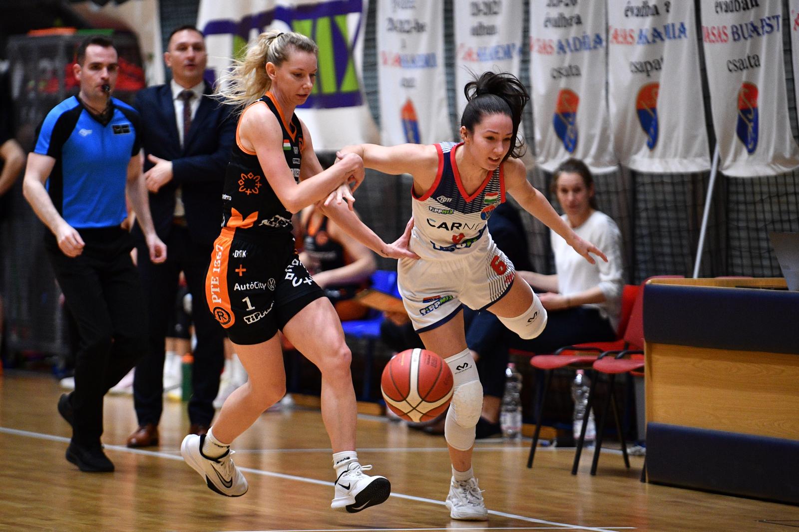 Varga találatával kezdődött a mérkőzés, a ziccerre Kendelényi Lulu válaszolt a túloldalon egyéni akcióból. Fiatal centerünk nem rettent meg a lehetőségtől és egy dobócsellel verte meg ellenfelét. Studer villantotta meg klasszisát, majd Angyal Barbi értékesített egy távoli triplát, amivel át tudtuk venni a vezetést. Kendelényi Lulu bő két perc alatt két személyit gyűjtött össze, második személyiét követően Reisingerová állhatott a büntetővonalra. A folytatásban sikerült kijátszanunk a vendég letámadást, Madár Eszti dobhatott ziccert rendezetlen védelem ellen, majd a csereként érkező Gyöngyösi Janka mutatkozott be egy hárompontossal. Jáhni Zsófi is betalált távolról, amivel hat pontra nőtt előnyünk. Kemény játékot és brutális tempót igyekezett diktálni a Pécs, Rátkai tört be a festékbe és használta ki lendületét, majd Török jóvoltából átvette a vezetést ellenfelünk. Nem kímélték egymást a csapatok, kúsztak-másztak a játékosok a labdáért, az agresszív, már-már durva játékból pedig a vendégek jöttek ki jobban. Mayr Lara hárompontosával zárkóztunk, majd Angyal Barbi harcolt ki faultot és értékesített két büntetőt. Jó védekezést követően irányítónkat megint cak szabálytalanul tudták megállítani a pécsiek, Barbi újabb két büntetőjével pedig visszavettük a vezetést. Begyújtották a rakétákat a Pécs Vasas nevelésű játékosai, Dúl, Varga, Tóth pontjaival rövid idő alatt kétszámjegyűre nőtt a különbség. Nenad Markovic még a negyed vége előtt megpróbált véget vetni a vendég rohamnak, Held azonban megszerezte a labdát, aminek köszönhetően Varga büntetőivel zárulhatott a játékrész.