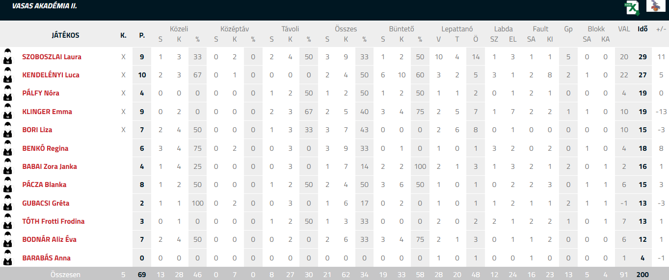 Vasas Akadémia II. – NKA Universitas Pécs II. 69-67 (19-14, 19-8, 15-24, 16-21)